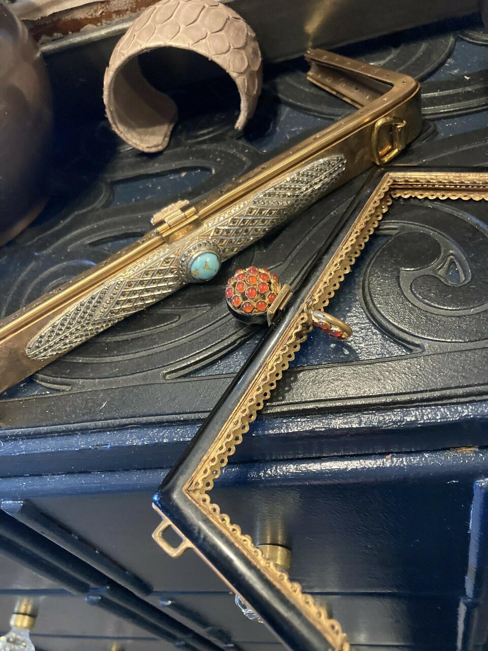 Anthony likes to remake the bags using his imagination, his knowledge and research on the history of accessories throughout different centuries. He remakes the bag with contemporary twists and attaches it to the vintage frame.